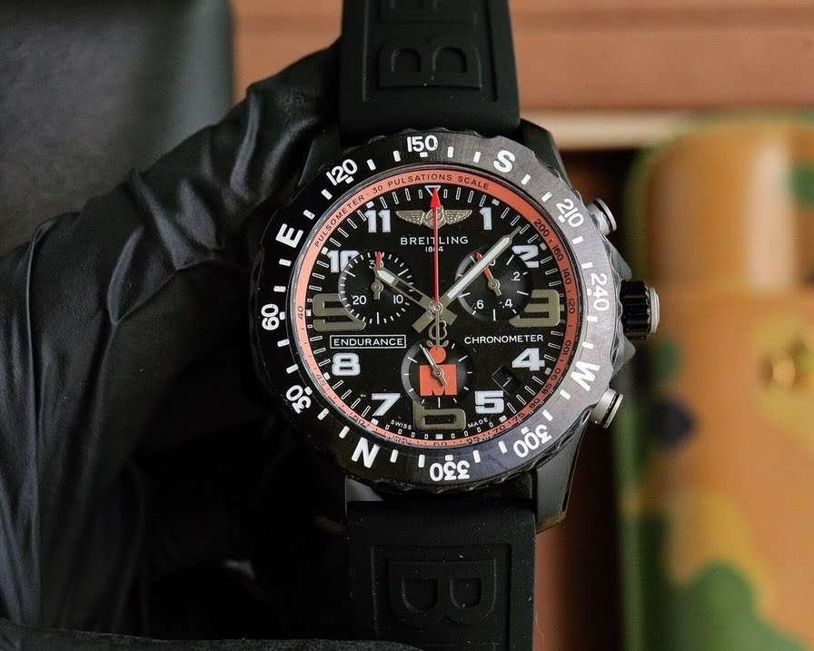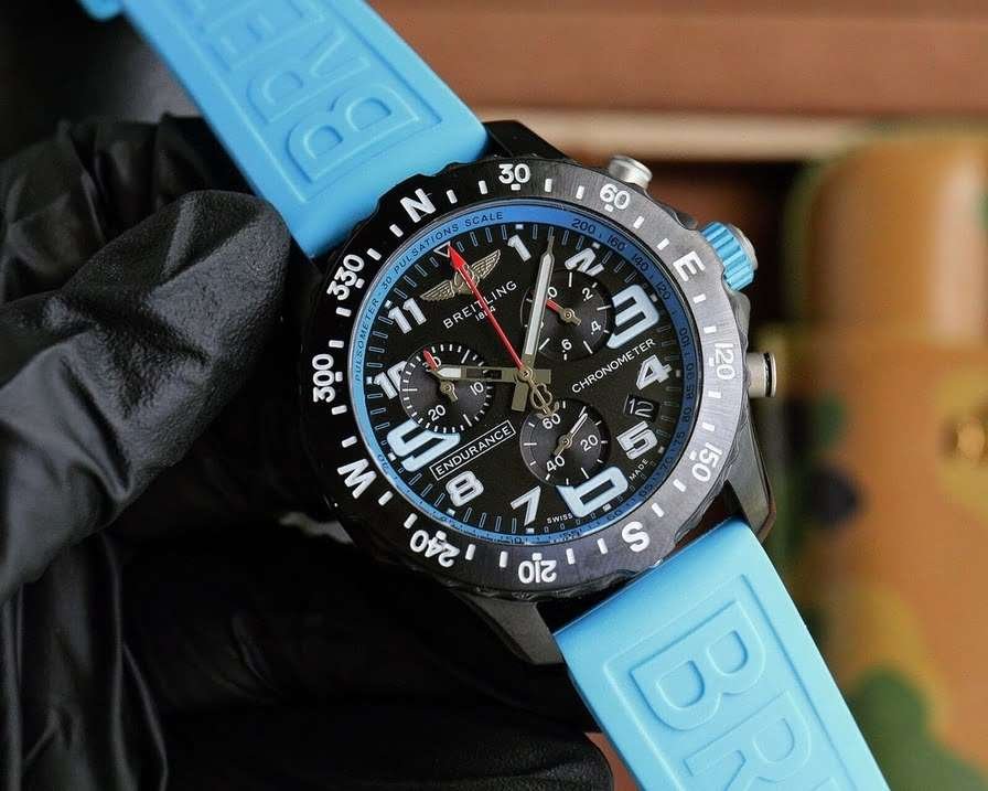 Brei@tling has launched a striking new color work – an ideal luxury sports watch that combines high precision, innovative technology, and dynamic color combinations. Once launched, it has attracted many professional athletes and sports enthusiasts. one ⃣ The 44mm precision steel watch case is made of CNC precision carving, with exquisite, smooth and round lines. The bidirectional rotating watch ring is engraved with four basic orientations of N, S, E, W and 360 ° scales, allowing the wearer to calculate the direction. two ⃣ The time scale on the dial should be enlarged by “3”, “6”, and “9” for easy reading; The time scale and pointer are coated with ultra strong luminous material to ensure clear reading at night; The scale of the pulse meter is printed on the colored inner circle, and you only need to activate the timer function to record the time spent on 30 heartbeats, and you can directly calculate your own heartbeats per minute. The dial at 2 o’clock is a 1/10 second timer, the calendar window is located between 4 o’clock and 5 o’clock, 6 o’clock is a small second hand, and 10 o’clock is a 30 minute timer. three ⃣ Sapphire crystal glass, double-sided anti glare. four ⃣ Equipped with the original super quartz movement, this movement has been officially certified by COSC, and its accuracy is ten times that of traditional quartz movements. five ⃣ Vietnam imported rubber strap with wear resistance and corrosion resistance, available in six styles: red, orange, yellow, blue, white, and black. It is colorful and vibrant